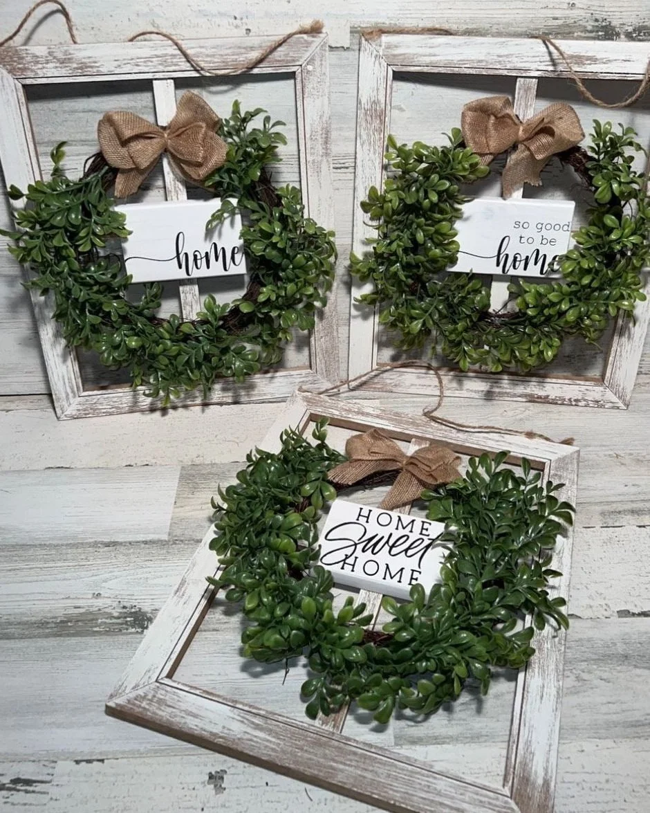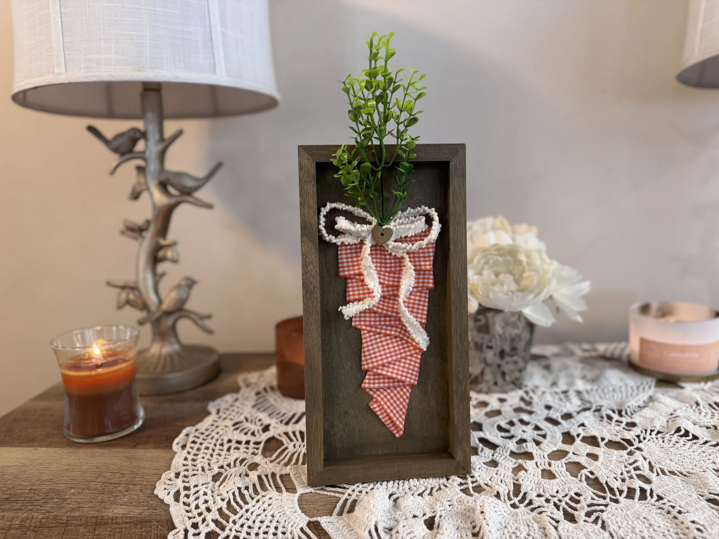 Make this spring inspired “Home Sweet Home” door/wall hanger/shelf-sitter. You choose the frame color, ribbon, and decal to make it a one-of-a-kind creation.